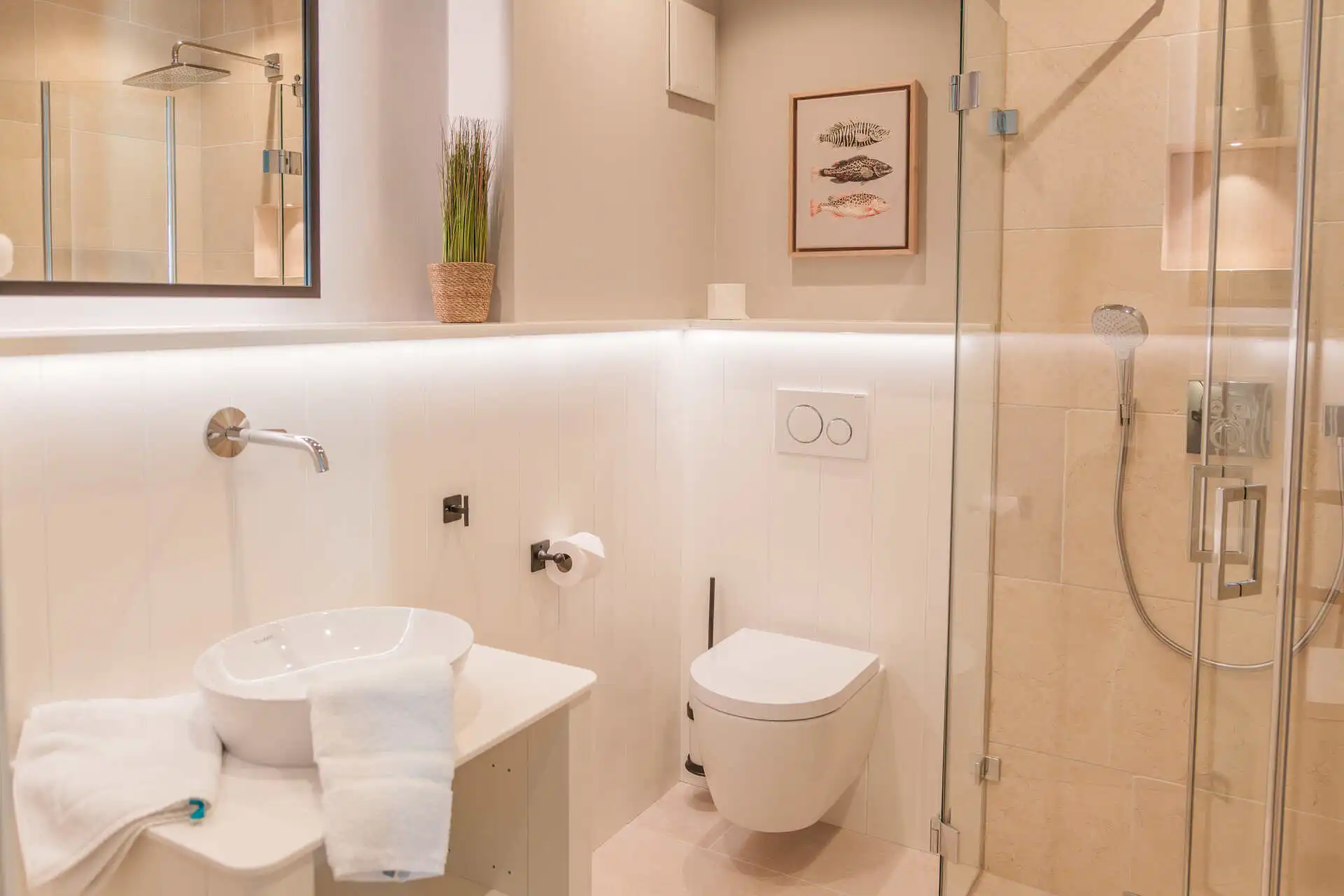 Die modernen Einbauküchen mit Markengeräten sowie stilvoll gestaltete Bäder mit Walk-in-Dusche und Rainshower runden das exklusive Gesamtbild ab.