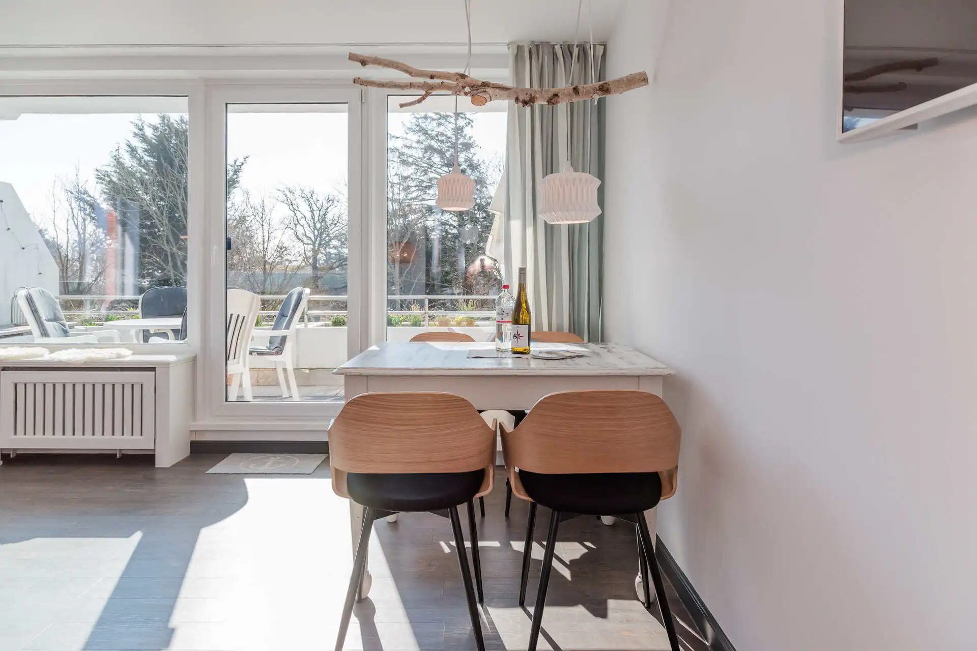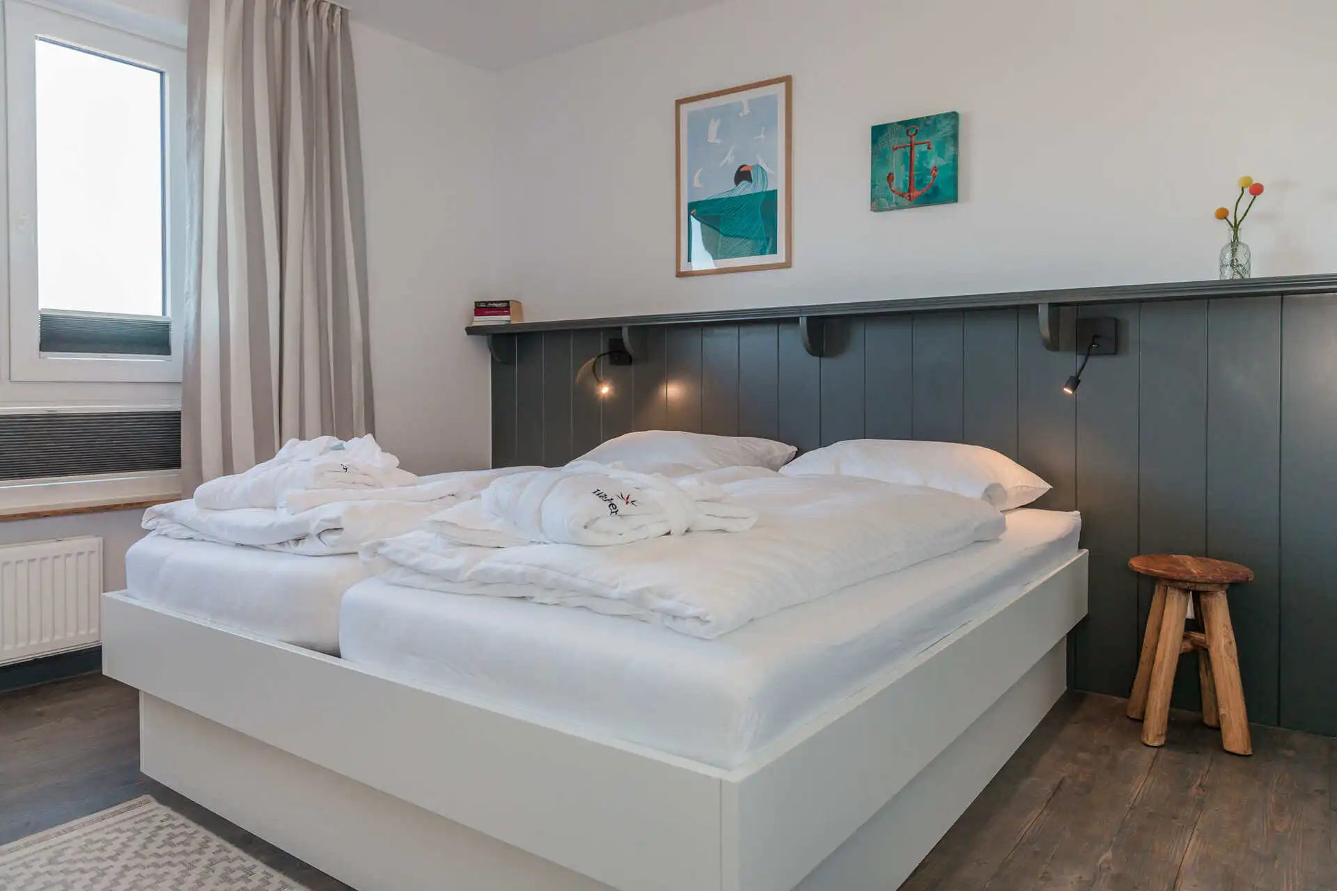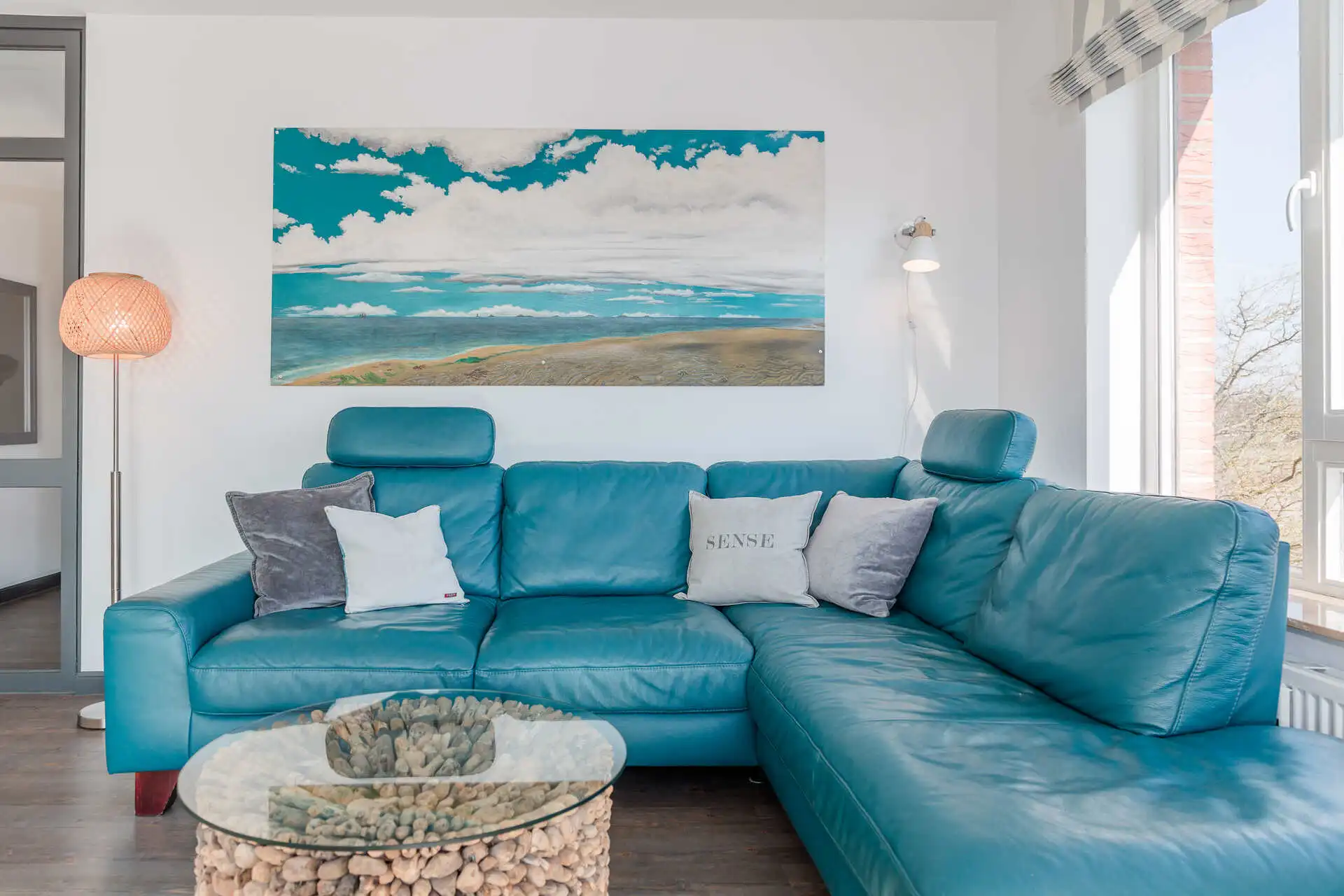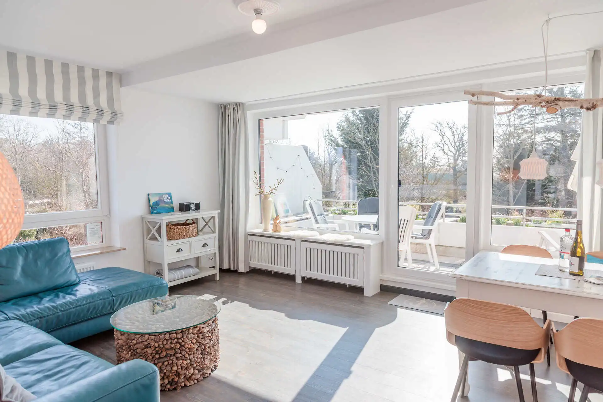 Die ansprechend ausgestattete 3-Zimmer-Wohnung beindruckt durch den herrlichen Blick von der sonnigen Terrasse auf das Meer und zu den Halligen.